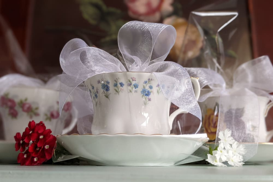 Unique china cup candles filled with fragrant soy wax from Wick Witch Apothecary in Merrickville will be on sale.